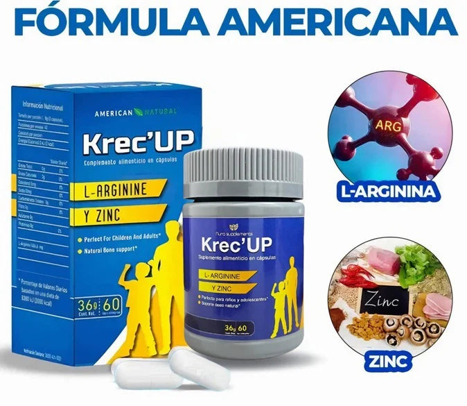 KREC´UP es un suplemento diseñado especialmente para jóvenes de 10 a 22 años, con una fórmula única que apoya el desarrollo natural gracias a sus ingredientes clave y cápsulas fáciles de tomar.