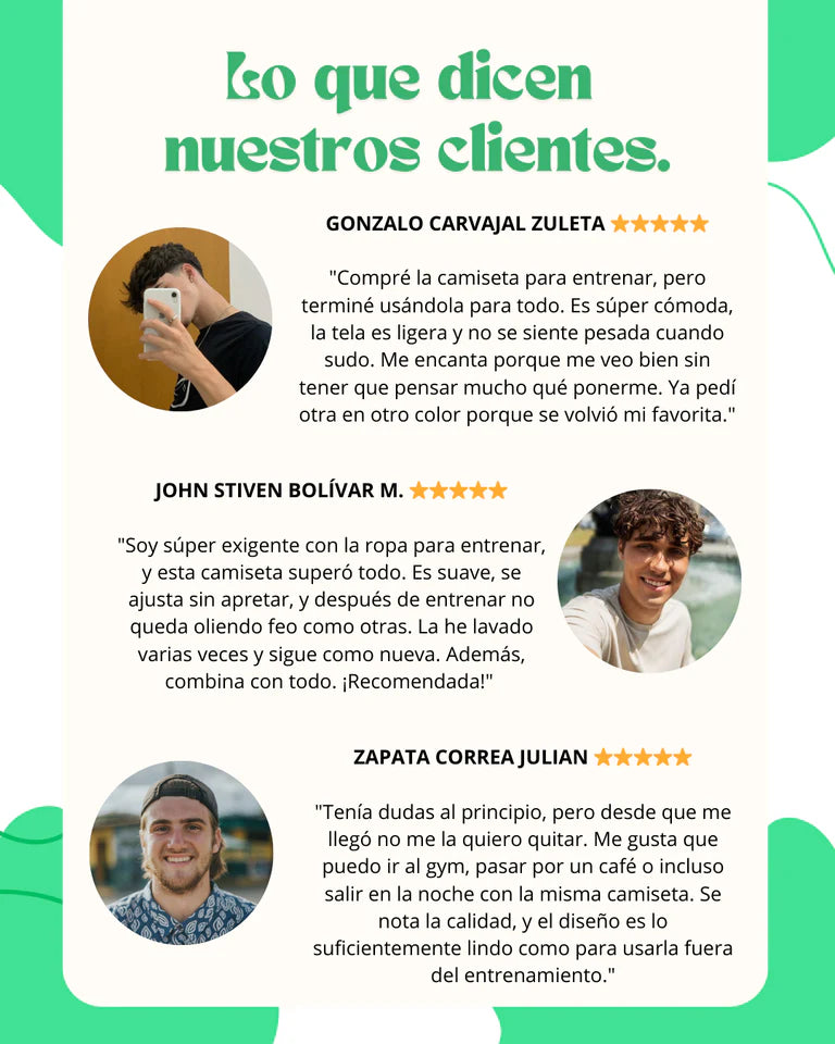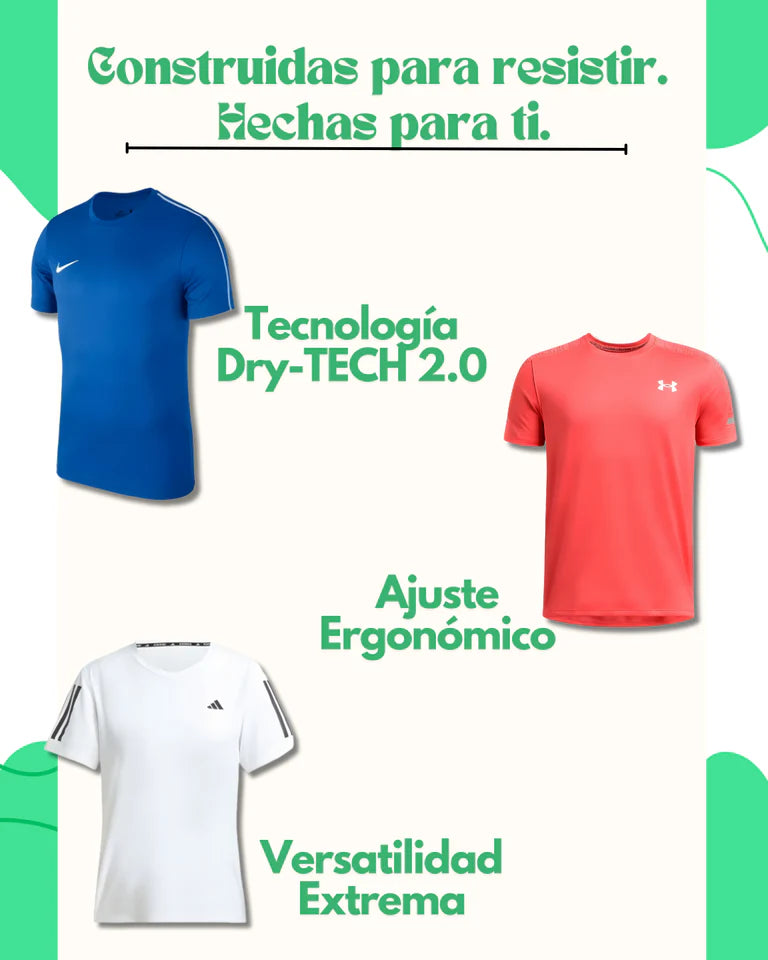 Fabricadas con tecnología textil de alta resistencia, cada camiseta soporta el uso diario sin deformarse ni perder color. Su tejido técnico mantiene la forma y el color, incluso después de muchas lavadas.